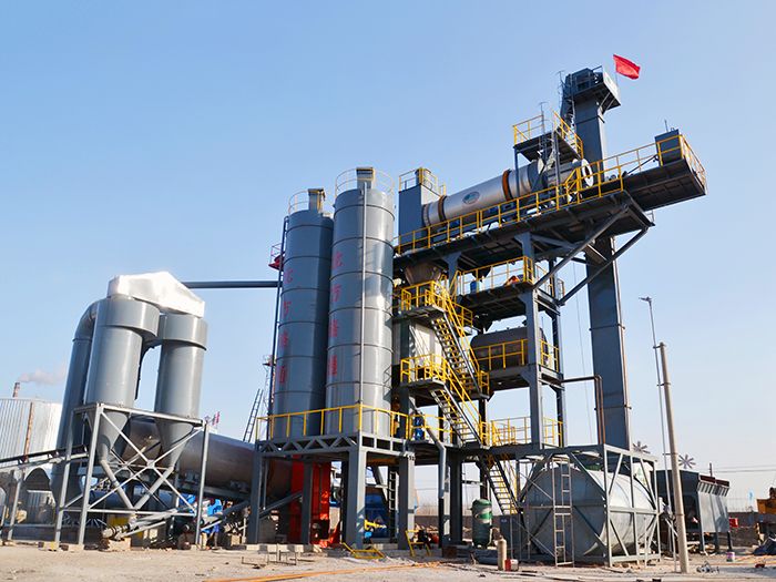 間歇固定式廠拌熱再生設備由回收料供給系統、烘干再生滾筒、熱回收料儲存倉、熱回收料稱量斗、除塵和煙氣處理系統及控制系統等組成。