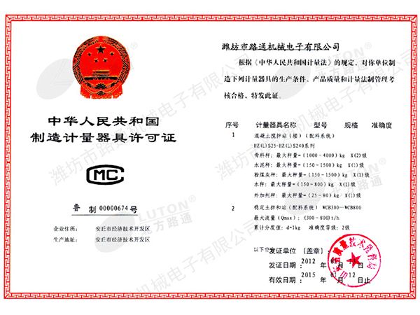 《制造計(jì)量器具許可證》混凝土、穩(wěn)定土